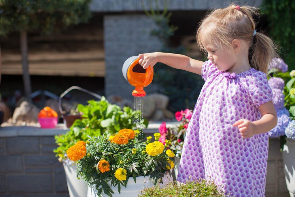Try setting up a play area in your backyard with elements like swings, a sandbox, a soccer net, basketball hoop, or a small garden where kids can dig and plant. Choose plants that are safe and interesting for children, such as sunflowers, marigolds, or strawberries.