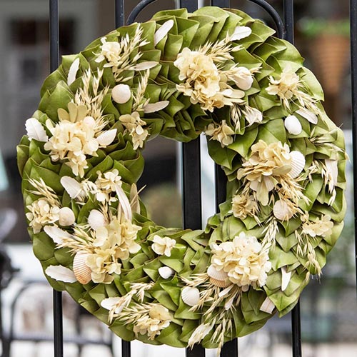 Another great way to bring the outdoors inside is to use elements of nature in your decor. Things like seashells, dried flowers, and even pinecones can add a natural feel to your home. If you like a beachy feel, you can use things like driftwood, jars of sand, or even our Coastal Breezes wreath. For a forest feel, you can use elements like oak and water elements.
