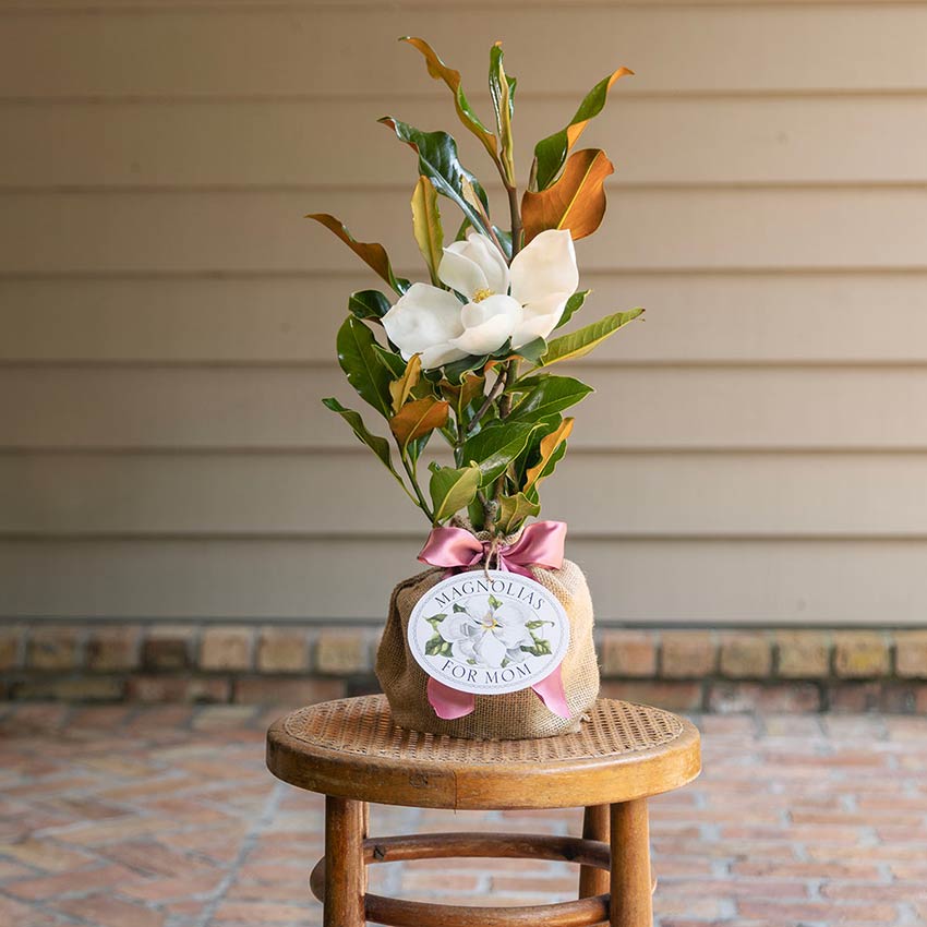Southern Magnolias can make great container plants for the front or back porch! By planting these trees in a larger container and keeping the root-ball moist, these small magnolia trees can be growing in such a fashion for many years. Plant your magnolia tree in general tree and shrub potting soil and apply a general tree and shrub fertilizer once per year. I like to use a slow release fertilizer applied in by the middle of March. But if you miss that date, do not worry you can apply this fertilizer at any time in the year. If your tree is getting too tall in the container, just take a pair of pruners and cut back your tree, keeping a center leader in the tree top.